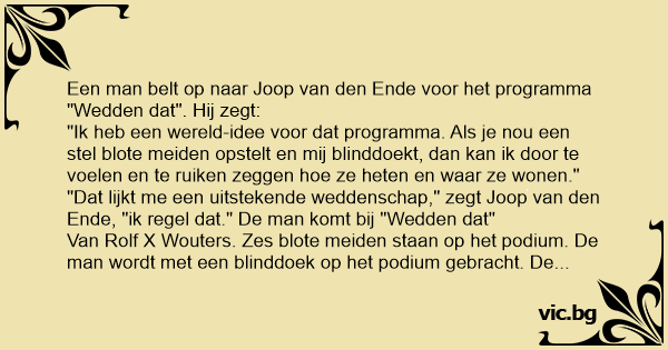 "Ik heb een wereld-idee voor dat programma. Als je nou een stel blote meiden opstelt en mij blinddoekt, dan kan ik door te voelen en te ruiken zeggen hое ze heten en waar ze wonen."