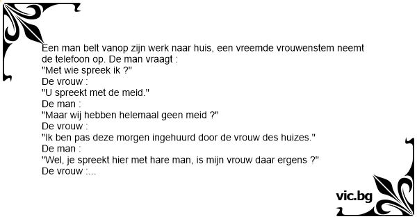 "Wel, je spreekt hier met hare man, is mijn vrouw daar ergens ?"