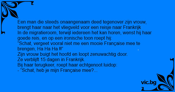 “Schat, vergeet vooral niet me een mooie Française mee te brengen, Ha Ha Ha !!”
