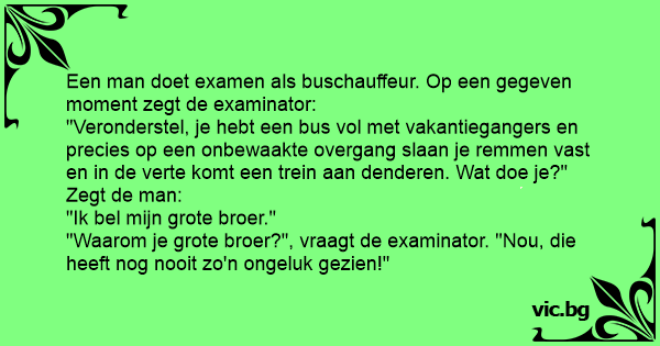 Een man doet examen als buschauffeur. Op een gegeven moment zegt de examinator: