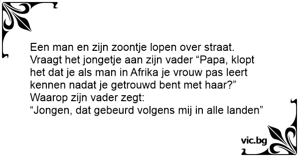 Синот го прашува таткото: Вистина ли е дека во некои области на Африка мажот не ја познава жената сè додека не ја ожени? Таткото: Така ти е тоа, сине мој, во сите земји.