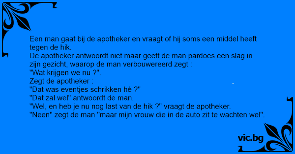 De apotheker antwoordt niet maar geeft de man pardoes een slаg in zijn gezicht, waarop de man verbouwereerd zegt :