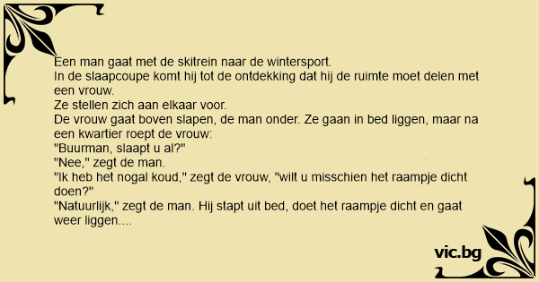 "Ik heb het nogal koud," zegt de vrouw, "wilt u misschien het raampje dicht doen?"