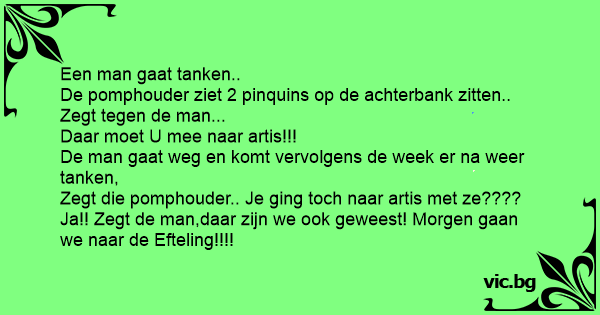 De pomphouder ziet 2 pinquins op de achterbank zitten..