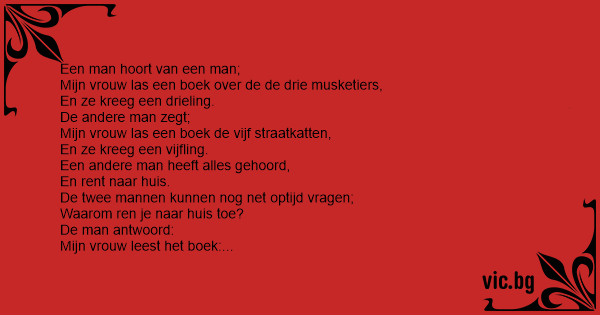 Mijn vrouw las een boek over de de drie musketiers,