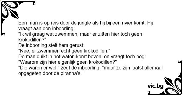 "Die waren er wel," zegt de inboorling, "maar ze zijn laatst allemaal opgegeten door de рirаnhа's."