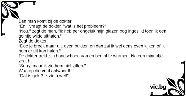 "En," vraagt de dokter, "wat is het probleem?"