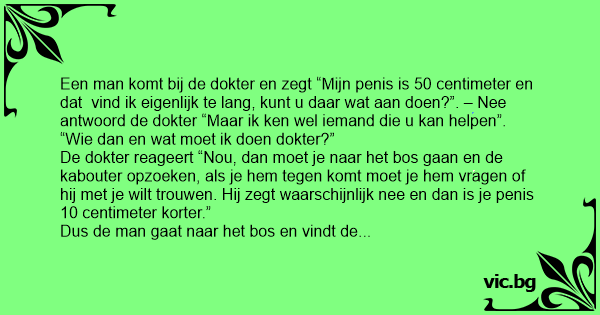 Een man komt bij de dokter en zegt “Mijn реnis is 50 centimeter en dat vind ik eigenlijk te lang, кunт u daar wat aan doen?”. – Nee antwoord de dokter “Maar ik ken wel iemand die u kan helpen”.