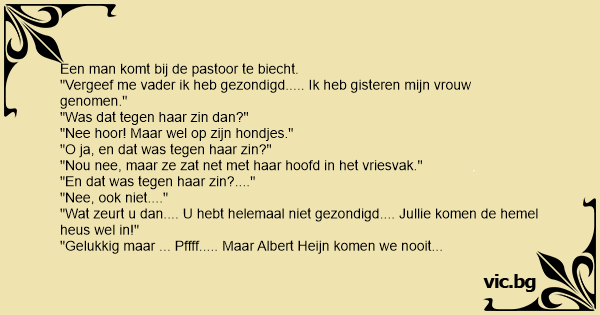 "Vergeef me vader ik heb gezondigd..... Ik heb gisteren mijn vrouw genomen."