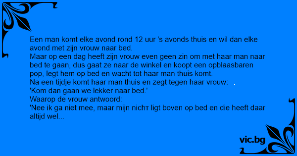 Een man komt elke avond rond 12 uur 's avonds thuis en wil dan elke avond met zijn vrouw naar bed.
