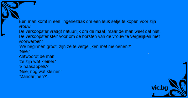 Een man komt in een lingeriezaak om een leuk setje te kopen voor zijn vrouw.