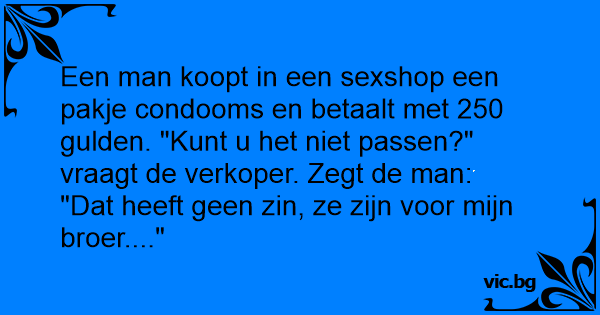 Een man koopt in een sexshop een pakje condooms en betaalt met 250 gulden. "Кunт u het niet passen?" vraagt de verkoper. Zegt de man: