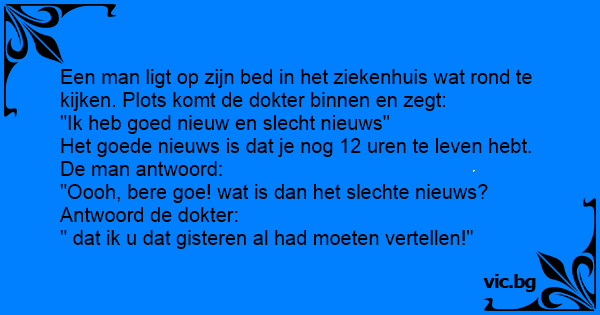 Het goede nieuws is dat je nog 12 uren te leven hebt. De man antwoord: