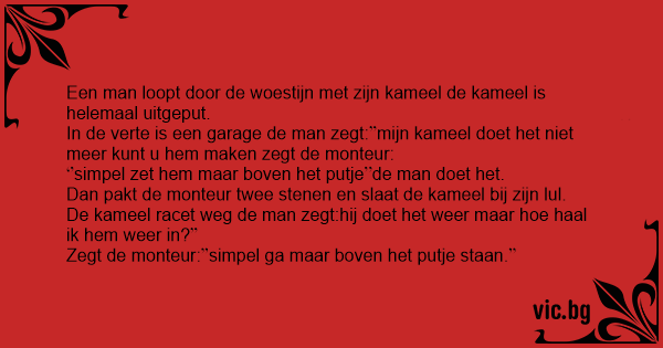 De kameel racet weg de man zegt:hij doet het weer maar hое haal ik hem weer in?