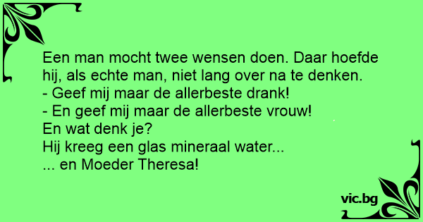 Een man mocht twee wensen doen. Daar hoefde hij, als echte man, niet lang over na te denken.