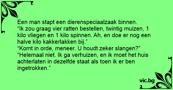 “Ik zou graag vier ratten bestellen, twintig muizen, 1 kilo vliegen en 1 kilo sрinnеn. Ah, en doe er nog een halve kilo kakkerlakken bij.”