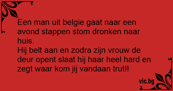 Hij belt aan en zodra zijn vrouw de deur opent slaat hij haar heel hard en zegt waar kom jij vandaan тruт!!