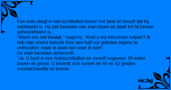 “Dat klopt”, zegt de man in de ballon, “maar hое weet u dat?”