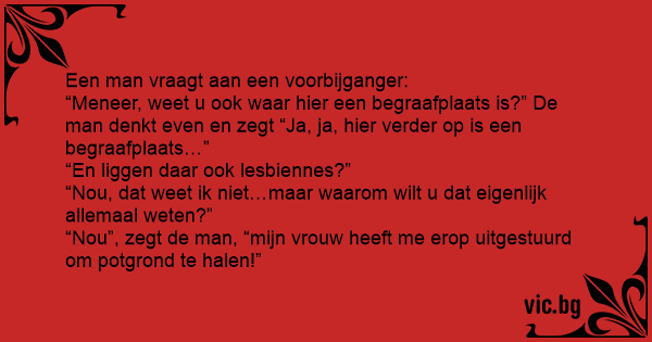 “Nou”, zegt de man, “mijn vrouw heeft me erop uitgestuurd om potgrond te halen!”