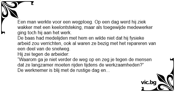 Een man werkte voor een wegploeg. Op een dag werd hij ziek wakker met een keelontsteking, maar als toegewijde medewerker ging toch hij aan het werk.