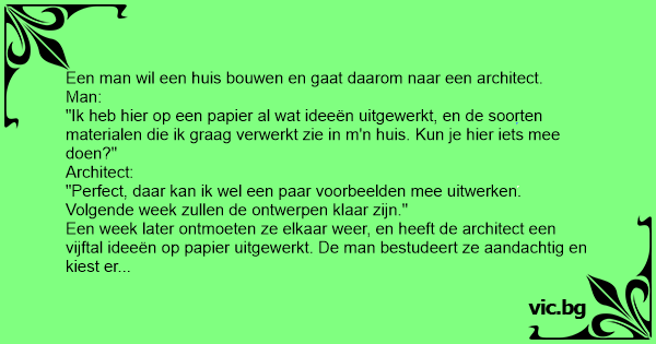 Een man wil een huis bouwen en gaat daarom naar een architect.