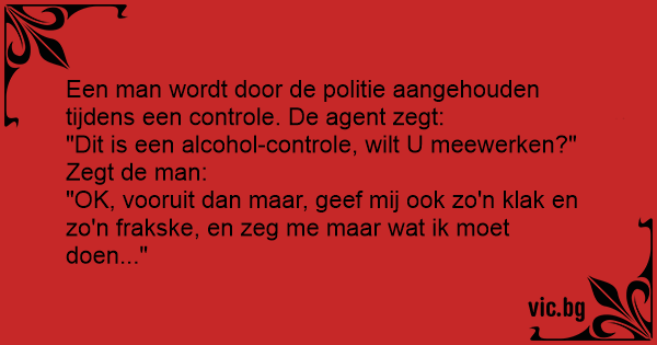 "Dit is een alcohol-controle, wilt U meewerken?"