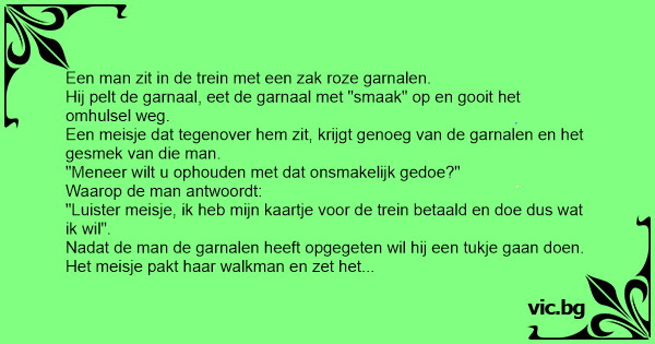 "Luister meisje, ik heb mijn kaartje voor de trein betaald en doe dus wat ik wil".