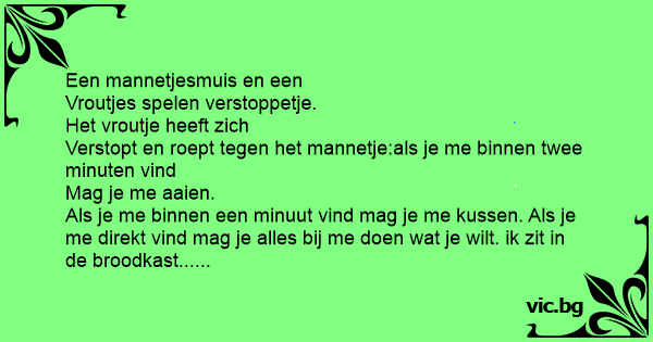 Verstopt en roept tegen het mannetje:als je me binnen twee minuten vind