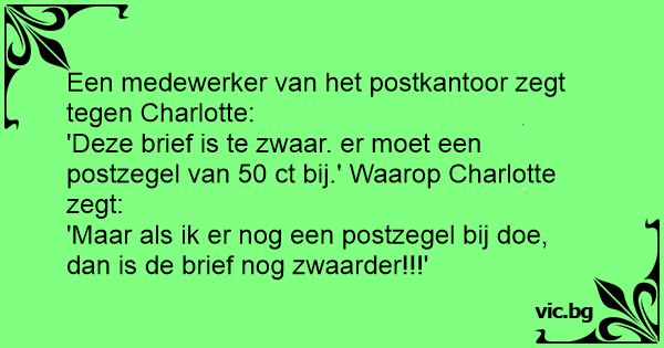 'Deze brief is te zwaar. er moet een postzegel van 50 ct bij.' Waarop Charlotte zegt: