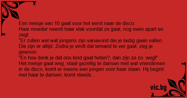 Een meisje van 16 gaat voor het eerst naar de disco.