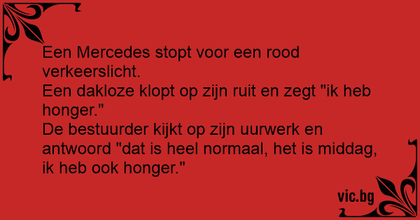 De bestuurder kijkt op zijn uurwerk en antwoord "dat is heel normaal, het is middag, ik heb ook honger."