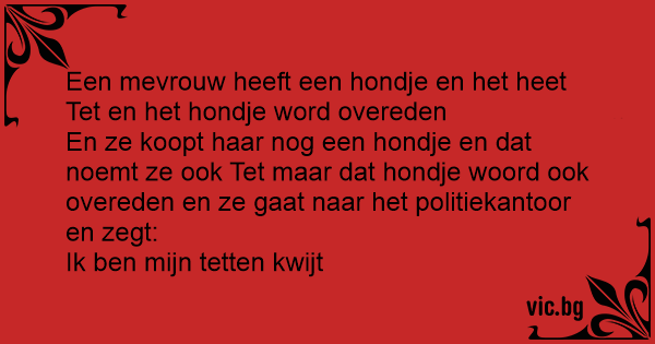 En ze koopt haar nog een hondje en dat noemt ze ook Tet maar dat hondje woord ook overeden en ze gaat naar het politiekantoor en zegt: