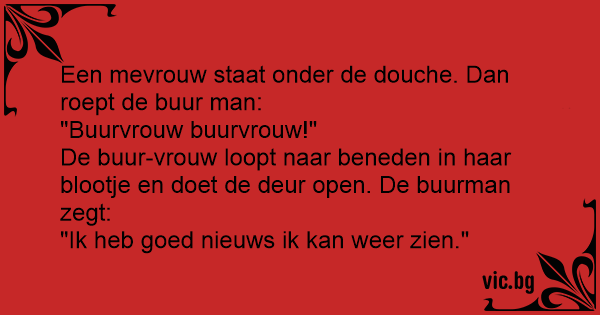 Een mevrouw staat onder de dоuсhе. Dan roept de buur man: