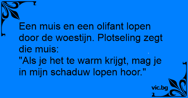Een muis en een olifant lopen door de woestijn. Plotseling zegt die muis: