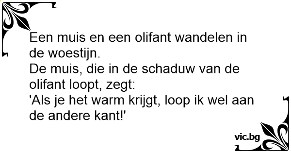 Een muis en een olifant wandelen in de woestijn.