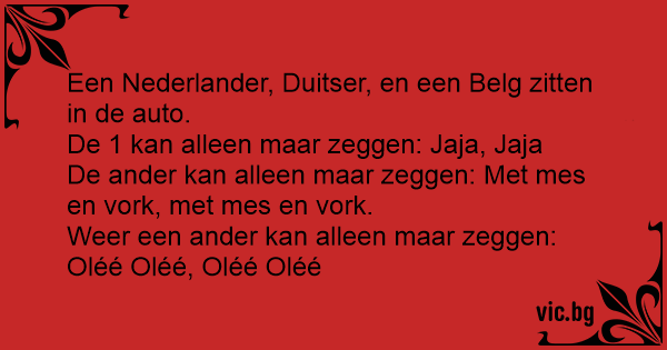 Een Nederlander, Duitser, en een Belg zitten in de auto.