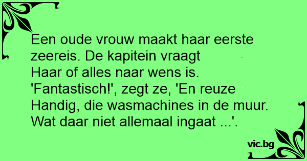 Een oude vrouw maakt haar eerste zeereis. De kapitein vraagt