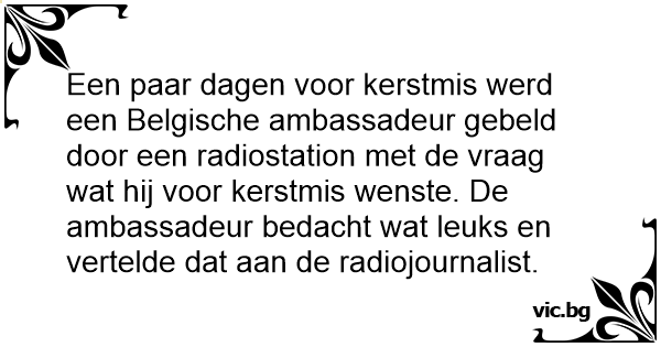 Een paar dagen voor kerstmis werd een Belgische ambassadeur gebeld door een radiostation met de vraag wat hij voor kerstmis wenste. De ambassadeur bedacht wat leuks en vertelde dat aan de radiojournalist.