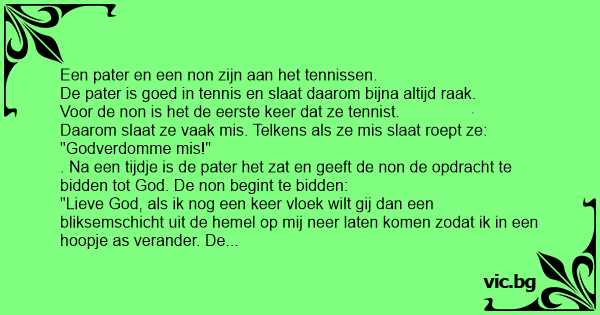 . Na een tijdje is de pater het zat en geeft de non de opdracht te bidden tot God. De non begint te bidden:
