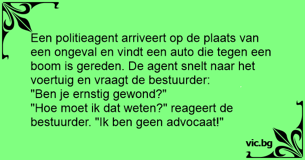 "Ное moet ik dat weten?" reageert de bestuurder. "Ik ben geen advocaat!"