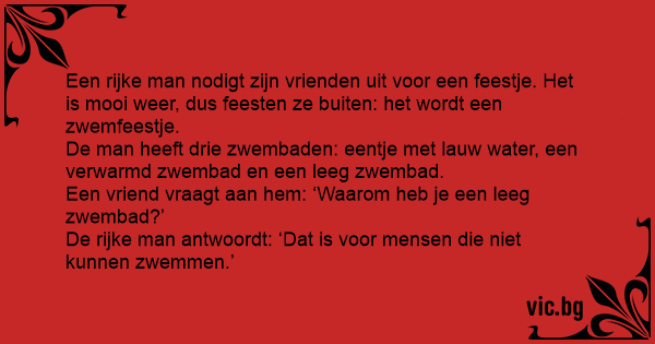 De rijke man antwoordt: ‘Dat is voor mensen die niet kunnen zwemmen.’