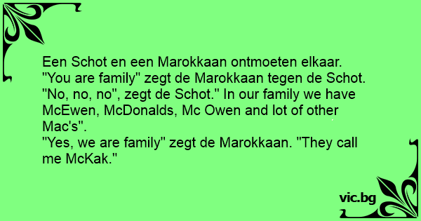 "No, no, no", zegt de Schot." In our family we have McEwen, McDonalds, Mc Owen and lot of other Mac's".