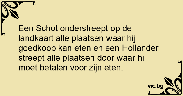 Een Schot onderstreept op de landkaart alle plaatsen waar hij goedkoop kan eten en een Hollander streept alle plaatsen door waar hij moet betalen voor zijn eten.