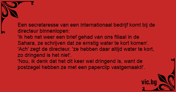 'Ik heb net weer een brief gehad van ons filiaal in de Sahara, ze schrijven dat ze ernstig water te kort komen'.