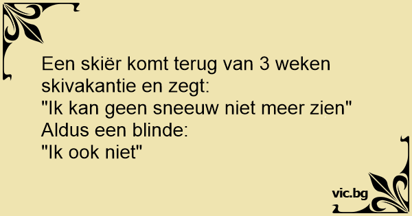 Een skiër komt terug van 3 weken skivakantie en zegt: