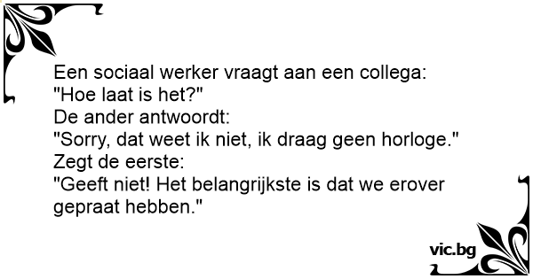 "Sorry, dat weet ik niet, ik draag geen horloge."