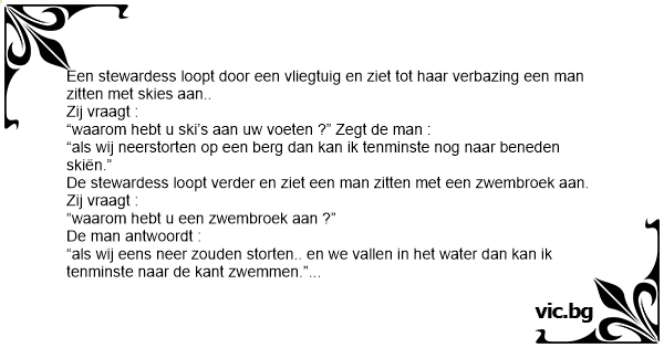 “waarom hebt u ski’s aan uw voeten ?” Zegt de man :