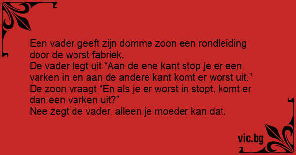 Een slager probeert zijn, niet al te slimme zoon op te leiden: Kijk jongen, dit is de gehaktmolen, dit is een hakbijl en deze machine is heel bijzonder, je stopt er een varken in en er komen...