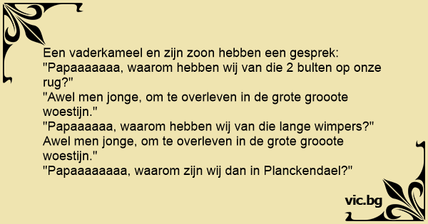 Een vaderkameel en zijn zoon hebben een gesprek: