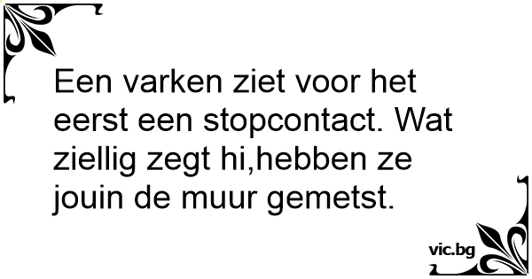 Een varken ziet voor het eerst een stopcontact. Wat ziellig zegt hi,hebben ze jouin de muur gemetst.